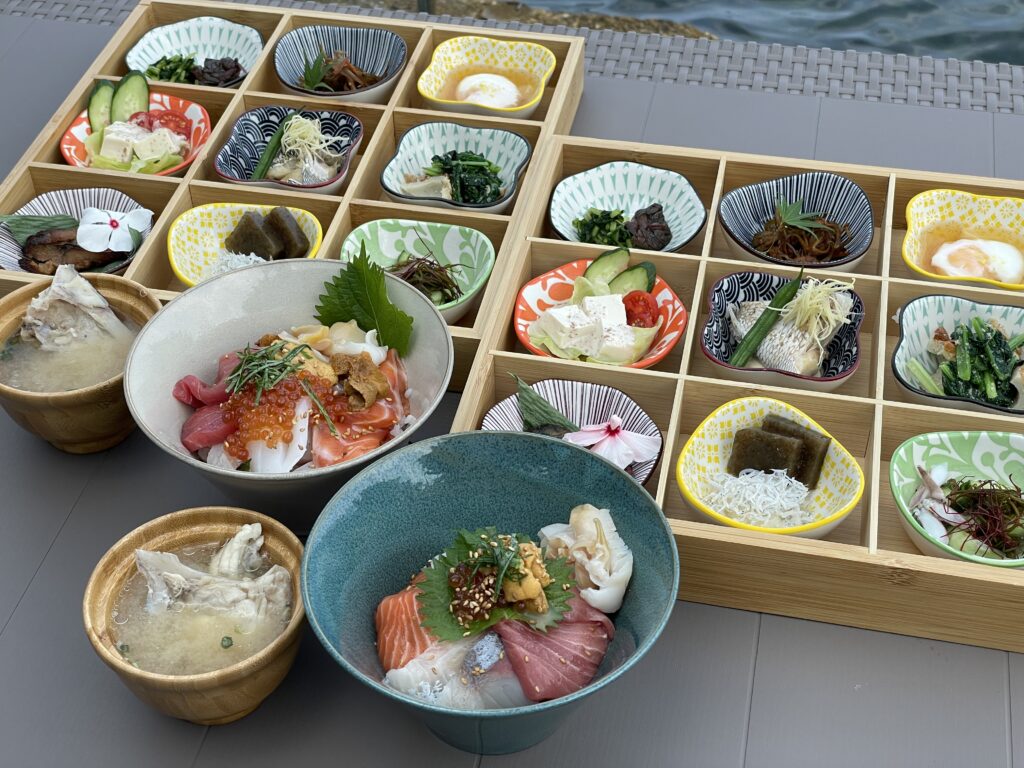 和食では、新鮮な魚介を好きなだけ盛り付けて楽しむ「自分で作る海鮮丼」がメイン。